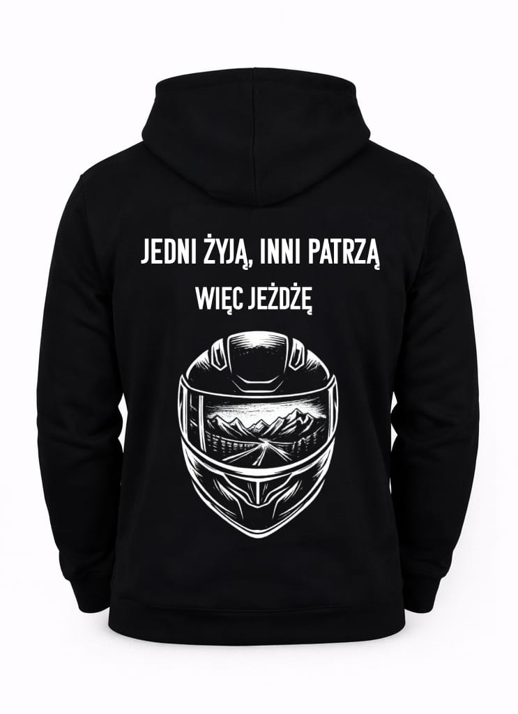Na przodzie bluzy widnieje hasło „BBLD.” – odniesienie do filozofii marki BEBOLD, która zachęca do bycia odważnym i autentycznym. Na plecach znajdziesz dodatkowy, motywujący napis: „JEDNI ŻYJĄ, INNI PATRZĄ”. To przesłanie, które przypomina, by nie stać w miejscu i odważnie podążać za swoimi marzeniami.