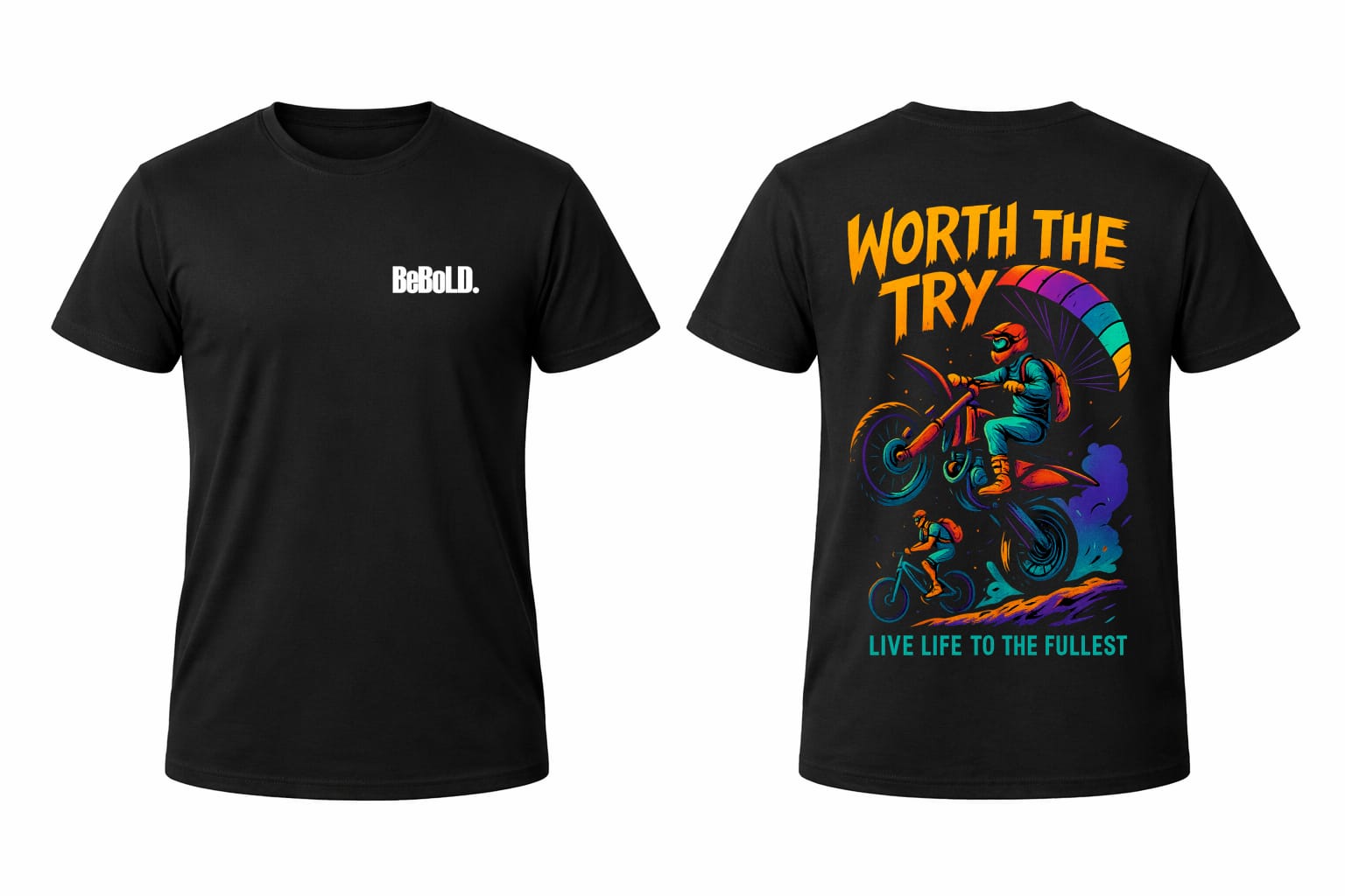 Na przodzie znajduje się hasło „BeBoLD.” – fundament filozofii marki BeBoLD., która zachęca do odwagi, autentyczności i działania na własnych zasadach. Tył koszulki zdobi autorski projekt graficzny, inspirowany ruchem, pasją, sportem i przekraczaniem własnych granic. Każdy wzór niesie ze sobą emocję i historię – nie jest tylko nadrukiem, ale formą wyrażenia stylu życia.